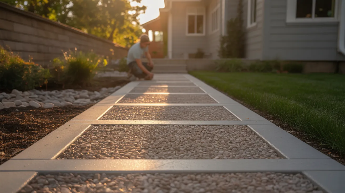 Improve curb appeal with stamped or exposed aggregate finishes tied to landscaping integration. Utilize integral color and UV-stable sealers to avoid fading. Add heated snow-melt loops where icing occurs. Organize seasonal planting so root zones do not heave pavements; install geogrids along with root barriers at planter interfaces. Complete with scheduled seal application, joint recaulking, and crack routing for extended performance.